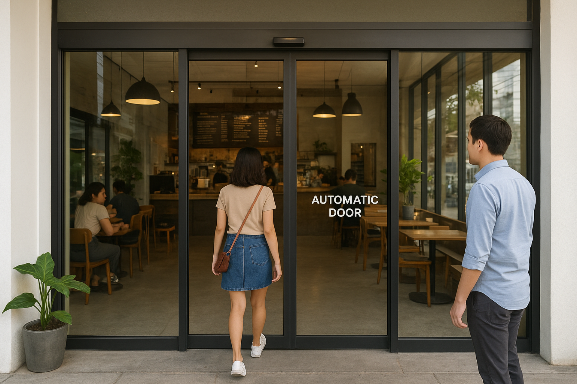 การที่ลูกค้าเดินเข้า-ออกโดยไม่ต้องใช้มือเปิดประตู ถือเป็นสิ่งเล็กน้อยที่สร้างความแตกต่าง โดยเฉพาะในคาเฟ่ที่ลูกค้ามักถือแก้วกาแฟหรือถุงขนม การมี auto door ทำให้การเข้าออกเป็นไปอย่างราบรื่น ไม่ติดขัด